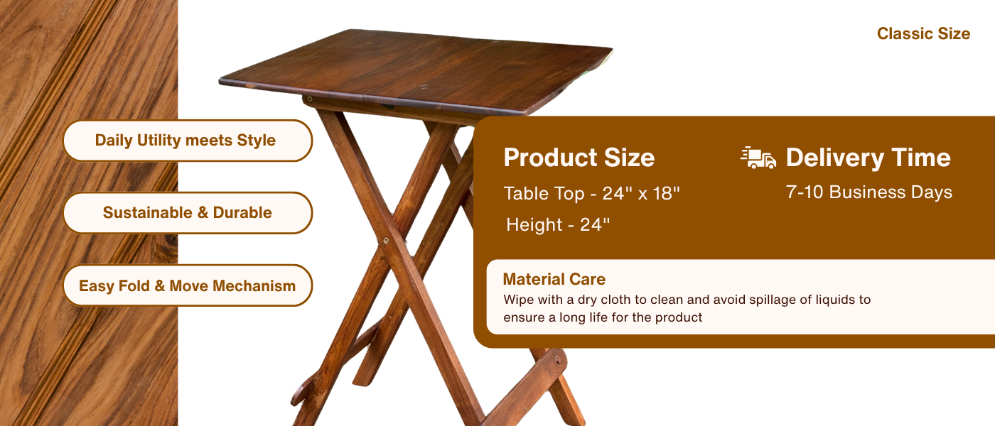 Upgrade your outdoor entertainment space with our stunning Teak Wood Folding Table. Crafted from high-quality teak wood, this table showcases a beautiful natural grain and boasts exceptional durability. Whether you're hosting a backyard barbecue or enjoying a cozy dinner for two, this folding table provides the perfect surface for dining, playing games, or simply enjoying a refreshing drink.